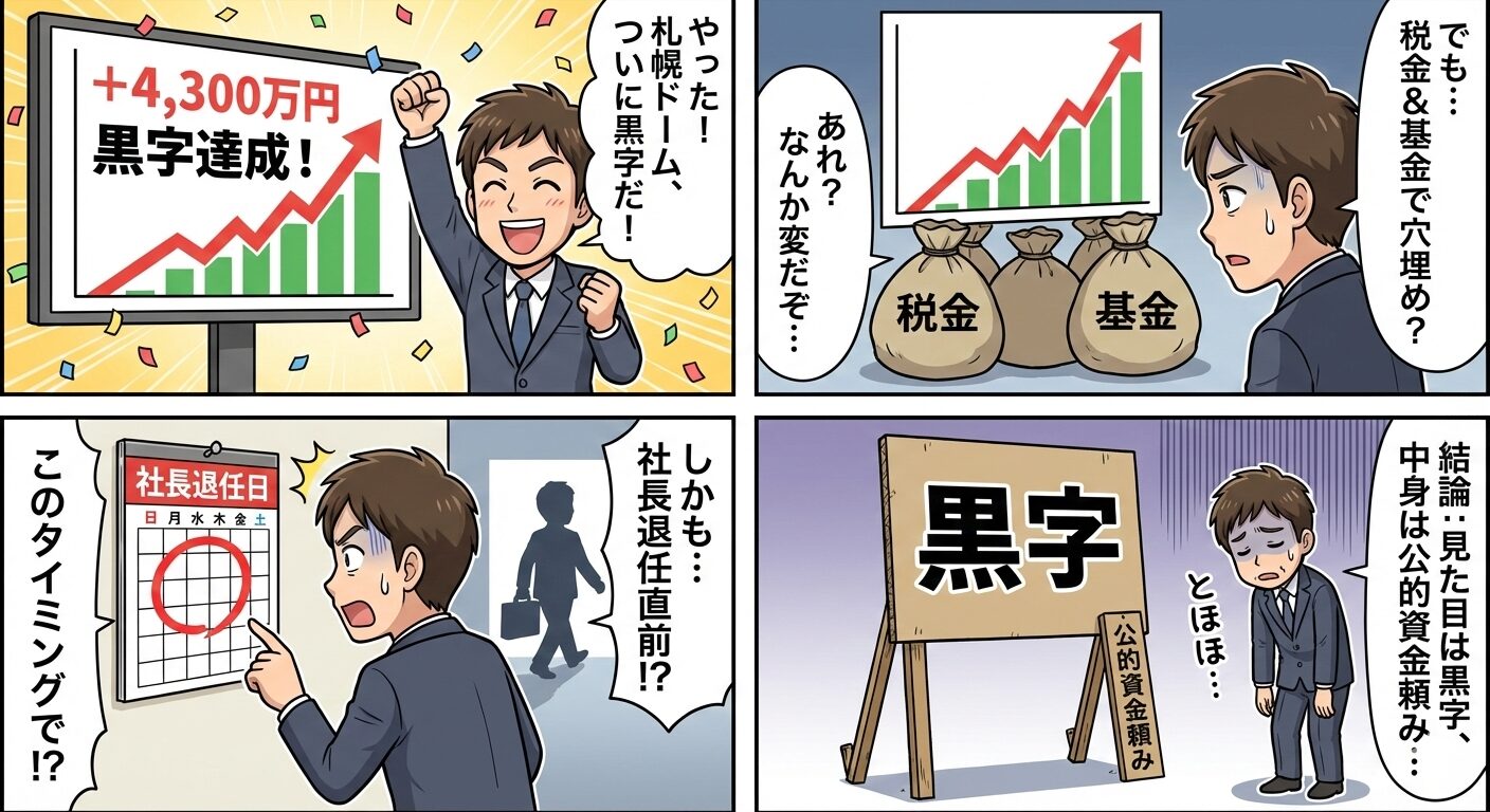 「札幌ドームが黒字化を達成した」というニュース。特に2024年度決算では約4,300万円の黒字と発表され、市の関係者や報道各社が「V字回復」と評しました。しかし、この黒字は果たして“本物”なのでしょうか?
